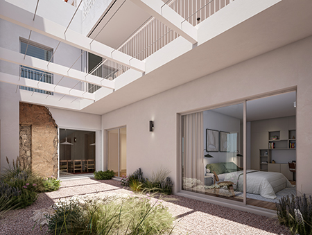 Construído com elevados padrões de qualidade, o empreendimento é constituído por moradias em banda, Apartamentos T2 e T3 e ainda um Palacete T4 com fachada original restaurada, que inclui um miradouro privado numa das torres do castelo, piscina no rés do chão e outra na açoteia.