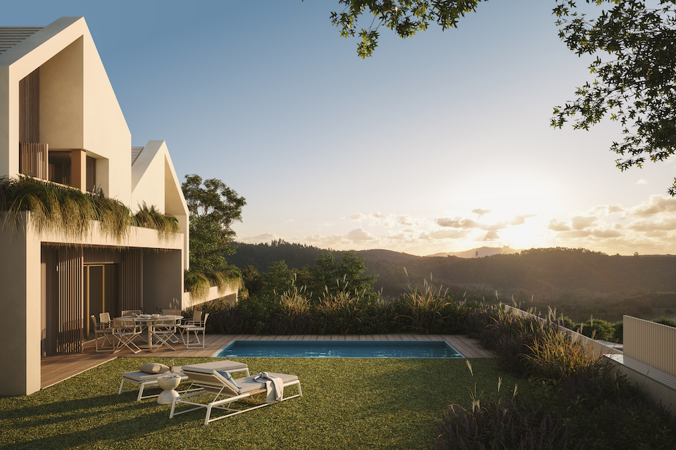 Inseridas em lotes entre 526 m² e 661 m², cada moradia oferece um amplo jardim e piscina que convida a aproveitar o exterior, brincadeiras ao ar livre e desfrutar de toda a paisagem envolvente com vista para a serra de Sintra e campo de golfe.