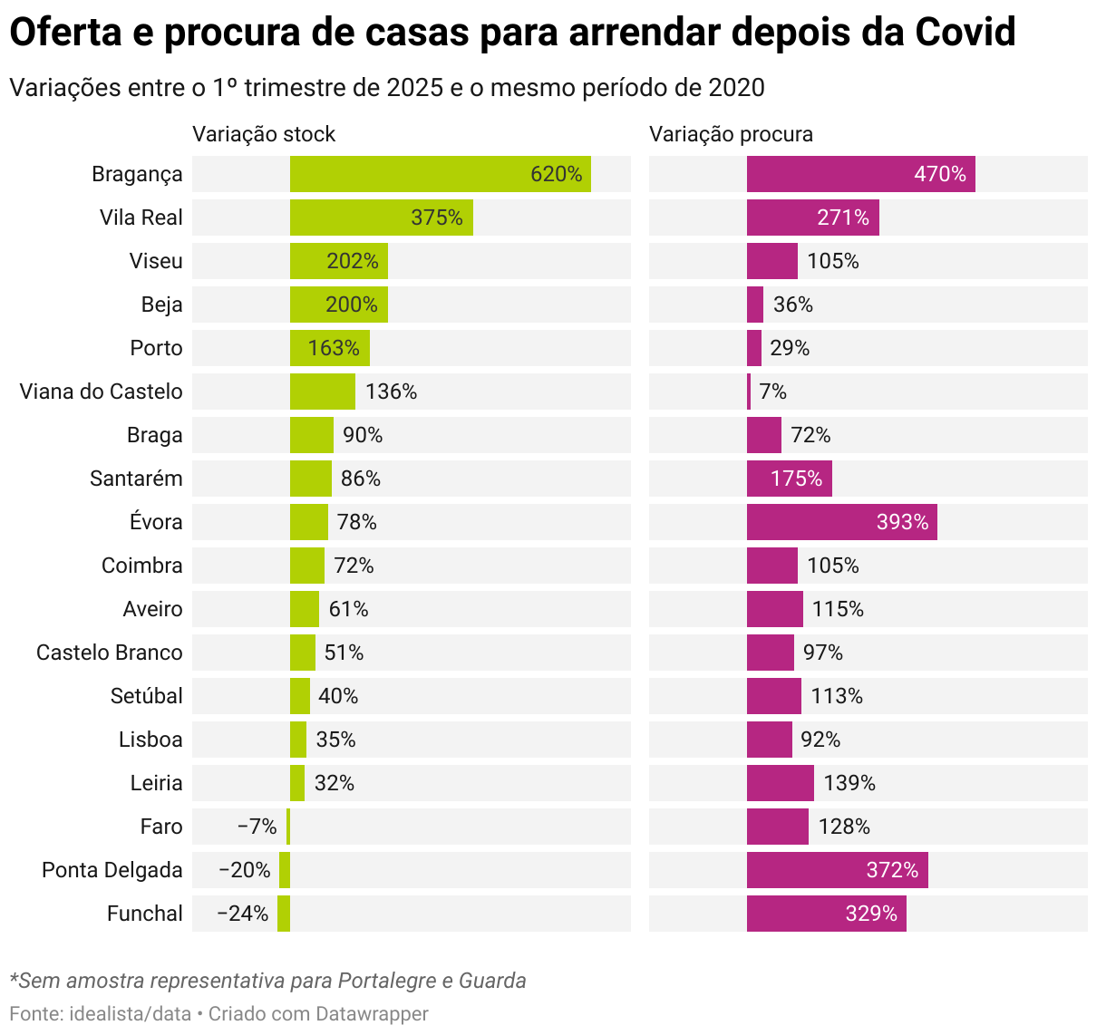 Neste período que separa da pandemia, o stock de arrendamento de longa duração mais que duplicou em várias cidades como Bragança, Porto e Viseu.