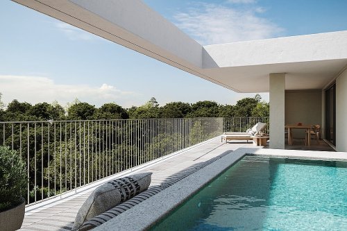 Entre os novos apartamentos, destacam-se duas penthouses T4 com piscina privativa e 301 m² de área total. Todos os imóveis incluem varandas ou terraços com vista sobre o campo de golfe, estacionamento com infraestrutura para carregamento eléctrico, e acesso a piscina, ginásio, sala multiusos e pet care station.
