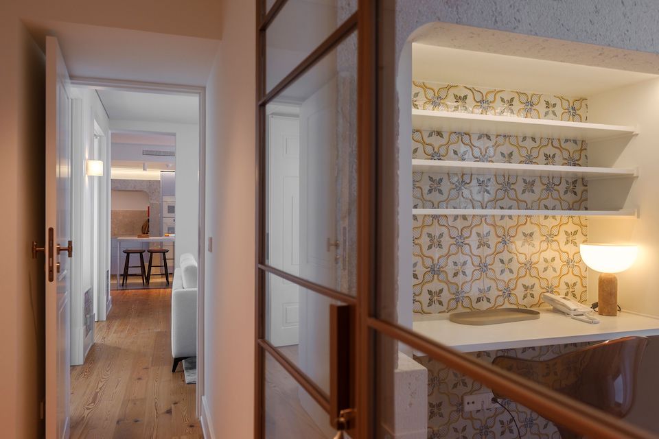 Um dos elementos mais distintivos do projeto é a presença de mais de 13.500 azulejos originais, que foram cuidadosamente numerados, retirados um a um e restaurados com enorme dedicação. Os azulejos estão agora distribuídos por todos os apartamentos, em espaços comuns como a sala de jantar e a sala de estar, permitindo que os hóspedes desfrutem do seu encanto.