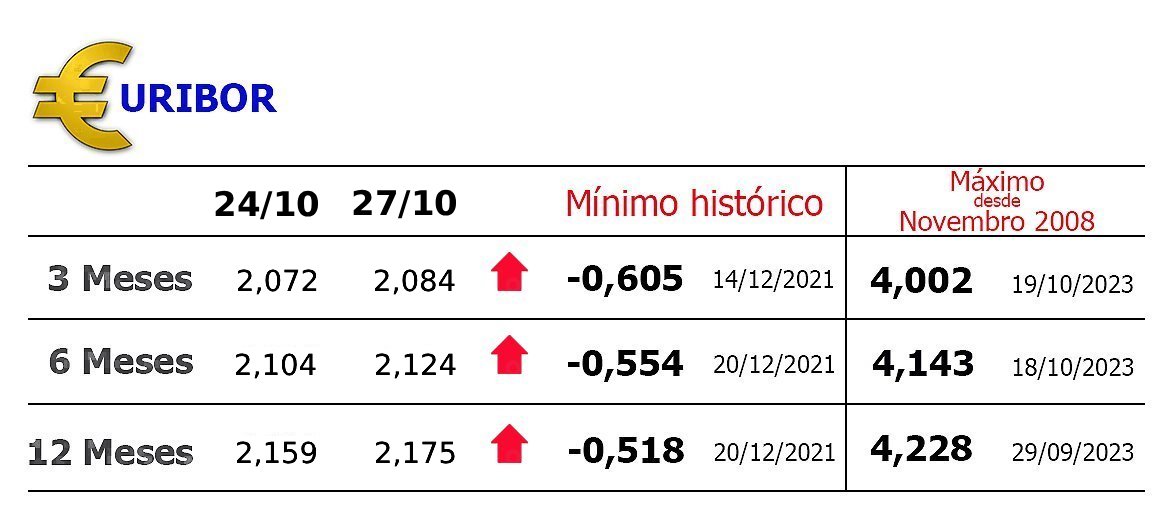 No prazo de 12 meses, a taxa Euribor também avançou, ao ser fixada em 2,175%, mais 0,016 pontos do que na sessão anterior.