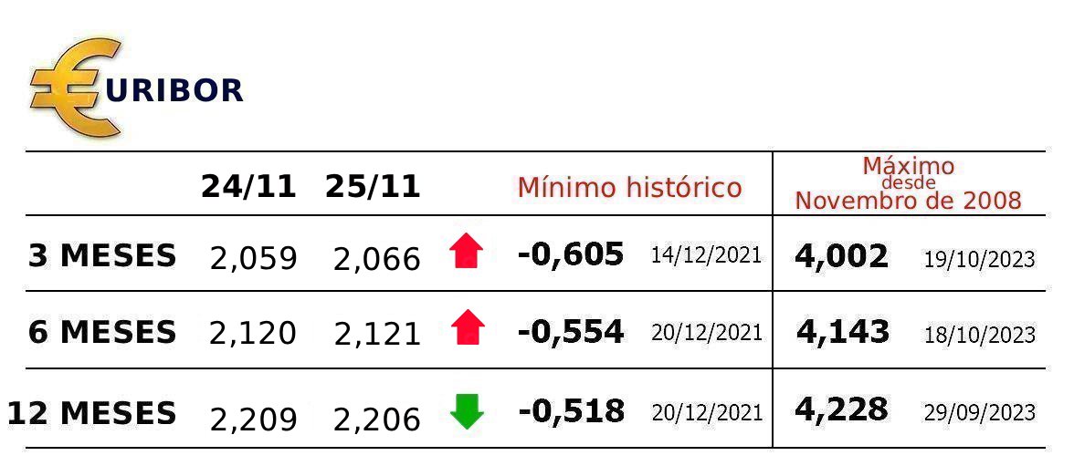 No prazo de 12 meses, a taxa Euribor recuou, ao ser fixada em 2,206%, menos 0,003 pontos.