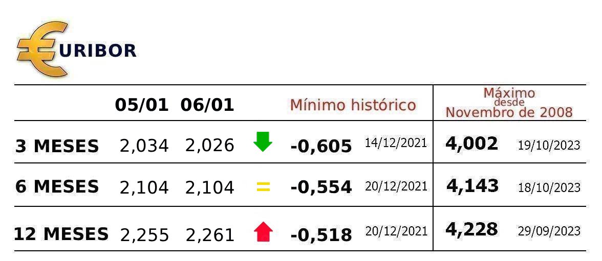 Em relação à média mensal da Euribor de Dezembro, esta voltou a subir a três, a seis e a 12 meses, mas de forma mais acentuada no prazo mais longo.
