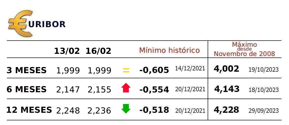 Já a Euribor a três meses manteve-se hoje ao ser fixada de novo em 1,999%, o mesmo valor de sexta-feira, depois de ter descido em 06 de Fevereiro pela primeira vez desde Novembro para menos de 2%.