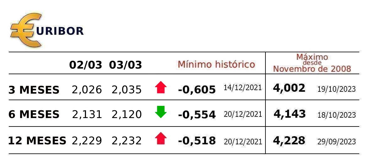 A Euribor a três meses também subiu hoje ao ser fixada em 2,035%, mais 0,009 pontos do que na segunda-feira.