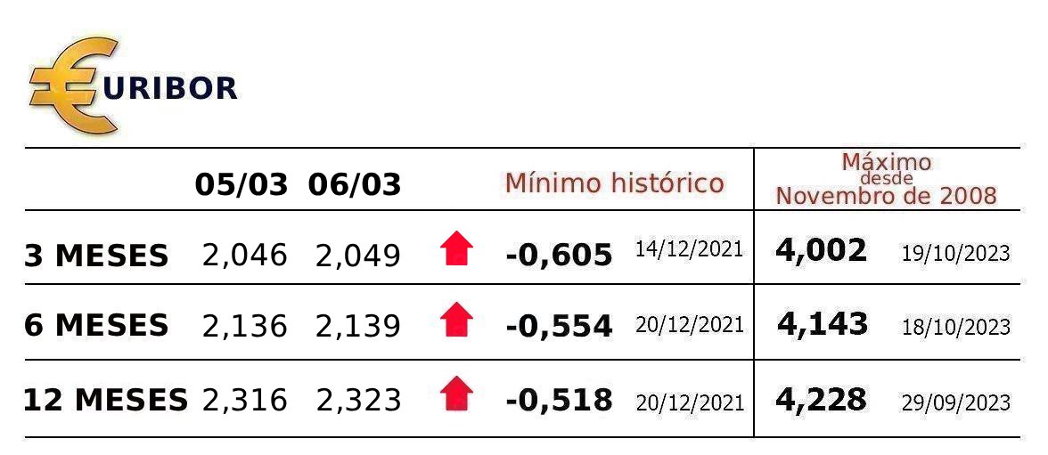Os mesmos dados indicam que as Euribor a 12 e a três meses representavam 31,78% e 24,98%, respectivamente.