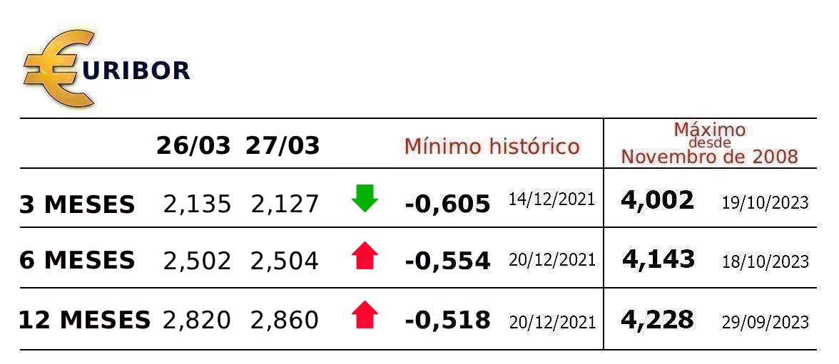 Em sentido contrário, a Euribor a três meses baixou hoje, ao ser fixada em 2,127%, menos 0,008 pontos.