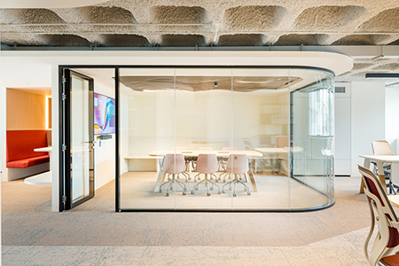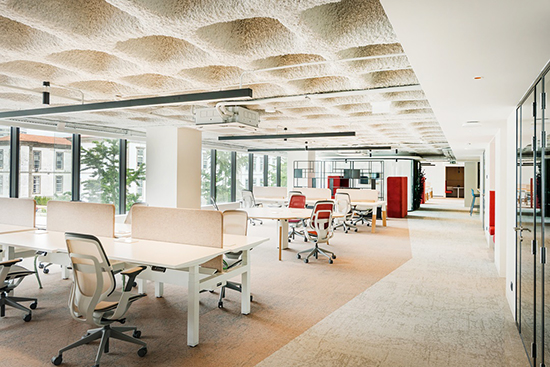 O escritório disponibiliza diversas valências pensadas para promover o bem-estar e a produtividade: postos de trabalho ajustáveis em open space, salas de reunião, espaços de foco, cabines individuais para chamadas, zonas de formação, uma área de lounge e uma zona de refeições confortável.