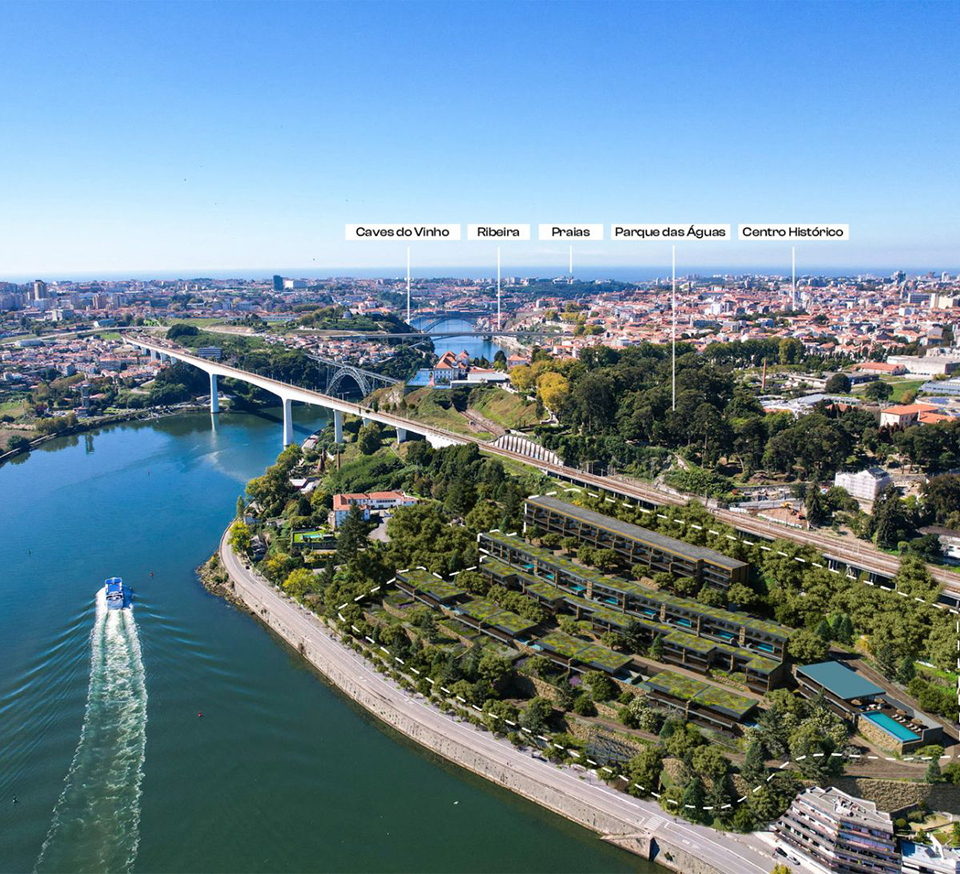 O empreendimento, situado junto à margem do rio Douro, na Quinta da China, a poucos minutos do centro do Porto, dispõe de moradias (26) e apartamentos (22) T3 a T5, e ‘amenities’ de excelência.