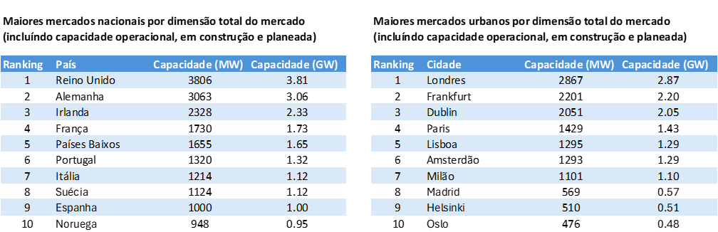 O relatório confirma a contínua liderança dos mercados FLAPD (Frankfurt, Londres, Amesterdão, Paris e Dublin), agora com Milão a juntar-se a este grupo. Estes seis mercados “Powerhouse” representam mais de 45% da capacidade operacional e quase metade do pipeline de desenvolvimento da região. Londres continua a ser o maior mercado da região EMEA, com 1.189 megawatts (MW) em operação e mais 1.678MW em desenvolvimento.