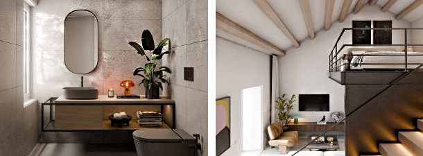 Cada loft foi cuidadosamente projectado para incorporar materiais nobres e acabamentos de alta qualidade, respeitando as características arquitectónicas pré-existentes e fundindo-se harmoniosamente com a paisagem. Com uma atenção rigorosa aos detalhes, as unidades oferecem ambientes amplos, luminosos e versáteis.