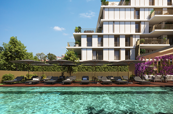 O empreendimento oferece 178 apartamentos, com tipologias de T1 a T5, e inclui uma vasta gama de ‘amenities’, como piscina, ginásio, espaço lounge e jardins privativos. Inspirado na história da zona, o projecto foi pensado para proporcionar uma vivência de alta qualidade, com áreas amplas, varandas generosas e uma arquitectura moderna, respeitando sempre a identidade local. As janelas a toda a altura promovem a entrada de luz e a sensação de conforto em toda a plenitude e os jardins exteriores privativos proporcionam a vivência de uma moradia no centro da cidade.