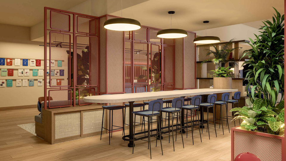 Os ambientes combinam zonas de lounge, refeição e trabalho com linhas clean, mobiliário ergonómico, pontos de carregamento integrados e uma disposição inteligente que promove tanto o descanso como a produtividade. O objectivo é criar espaços versáteis onde os hóspedes possam trabalhar, relaxar ou socializar com naturalidade.