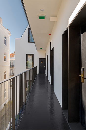 A intervenção visou adaptar a estrutura habitacional original às exigências funcionais de uma unidade hoteleira, nomeadamente através da reorganização dos circuitos de circulação entre áreas de serviço e zonas de hóspedes. Para isso, foram introduzidos dois elevadores que separam claramente os fluxos operacionais e criadas galerias exteriores na fachada virada para o n.º 12, aproveitando o afastamento entre edifícios para permitir o acesso directo aos quartos.