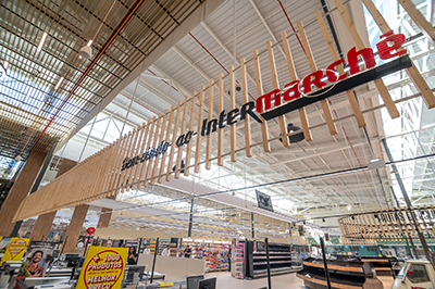 Para além da loja Intermarché, o projecto inclui uma galeria comercial inovadora, pensada para oferecer conveniência, bem-estar e uma resposta mais completa às necessidades da população. O espaço reúne oito lojas com áreas distintas, incluindo parafarmácia com serviço de óptica, papelaria, cafetaria, parque infantil e uma área de restauração com capacidade para 400 lugares sentados.