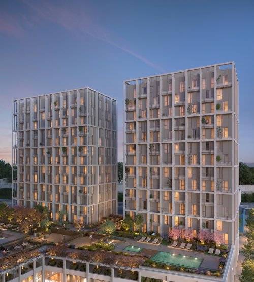 Com áreas entre 40 m² e 107 m², os apartamentos distribuem-se por edifícios de 14 pisos e foram pensados para oferecer conforto, luz natural e flexibilidade de uso. O projecto inclui ainda lobby multifuncional, zonas de lounge e coworking, ginásio, duas piscinas, jardins privados, estacionamento e serviços de recepção e segurança.