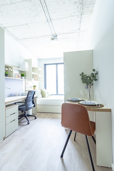 - CoLife Suites: quartos com casa de banho privativa, cama queen size, secretária de trabalho, cadeira ergonómica, armário de arrumação, mini frigorífico, micro-ondas e zona de refeições. Nesta tipologia, os residentes partilham uma cozinha social totalmente equipada com máquina de lavar a loiça, forno, micro-ondas, torradeira, fogão, exaustor e frigoríficos grandes.