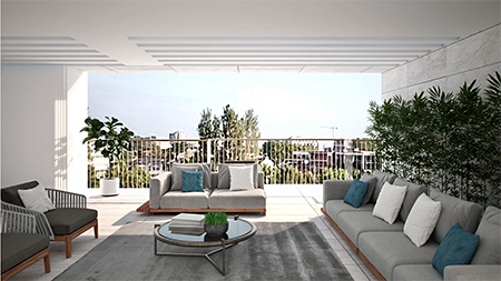O novo edifício, integrado no condomínio The Garden, apresenta apartamentos ‘premium’ com tipologias T0 a T5, todos com varanda, terraço ou jardins privativos