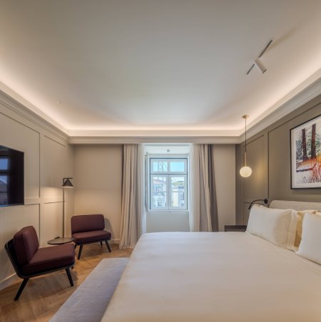 Dirigido por Vera Cordeiro, o MACAM Hotel oferece 64 quartos e suites distribuídos entre o palácio e uma ala moderna, com interiores assinados por Andrez&Andrez e iluminação da Lightware. Todos os hóspedes têm acesso às galerias do museu, à biblioteca D. João da Câmara, ao rooftop bar com piscina e vista sobre o Tejo, e a um ginásio totalmente equipado.