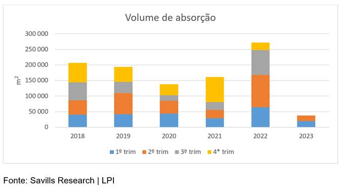 Alexandra Portugal Gomes, Head of Research da Savills Portugal acrescenta ainda: “Mas é também muito importante que se compreenda que tivemos um ano outlier, o ano 2022, onde se bateu um recorde histórico de fecho de operações de pré-arrendamento para áreas de grande dimensão. Obviamente que o ano 2022, vai sempre inflacionar e influenciar negativamente as taxas de crescimento de 2023, não significando que haja de todo um abrandamento da procura.”
