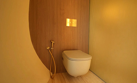 Nos espaços de banho, a OLI marca presença com os autoclismos interiores e as placas de comando, soluções que privilegiam design, eficiência e sustentabilidade.