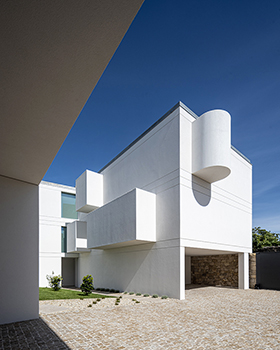 A intervenção no gaveto das alminhas de São José, no centro da cidade de Vila do Conde, teve como programa a construção de uma habitação unifamiliar e de um edifício de habitação colectiva para arrendamento com dois apartamentos e uma loja para comércio ou serviços.
