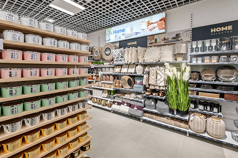 No total são cerca de 500 categorias de produtos e, em média, existem cerca de 12.000 artigos diferentes em uma loja individual.