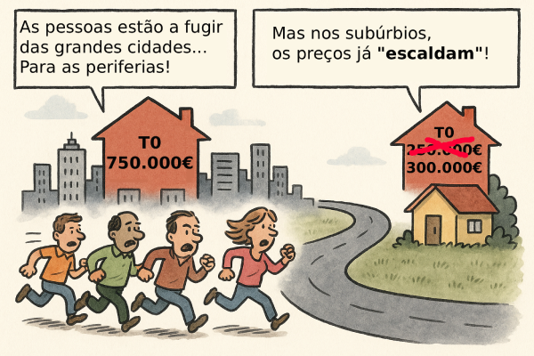 O estudo evidencia a tendência de deslocação das famílias para zonas periféricas das grandes cidades, num mercado onde os preços continuam a subir, mesmo longe dos centros urbanos.