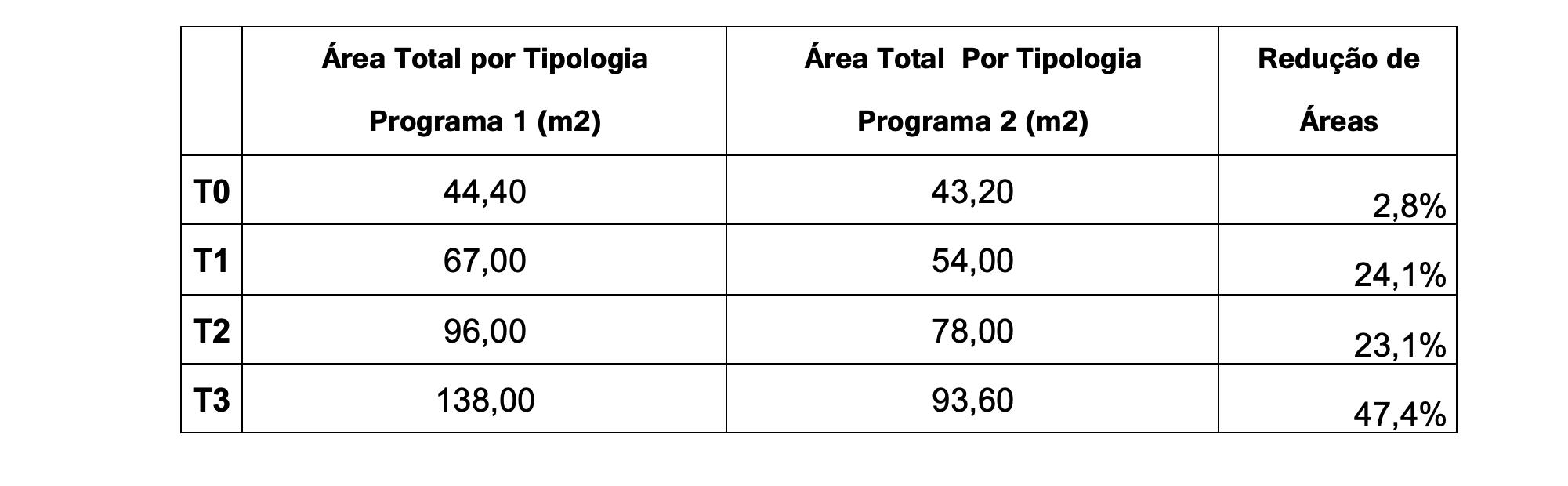 3) Reduzir Áreas Por Tipologia, criando um produto mais compacto.