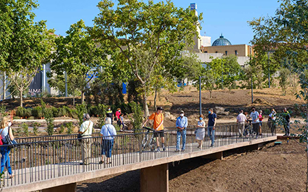 Em artigo de Opinião publicado no jornal Expresso, a 03 de Outubro do ano passado, Manual Salgado, Arquitecto e ex-vereador de Urbanismo da Câmara Municipal de Lisboa entre 2007 e 2019, escrevia: «A Praça de Espanha que hoje vemos é, porém, bem diferente dessa que o projeto prometia. O Parque Gonçalo Ribeiro Telles foi inaugurado em Junho de 2021 sem a ponte, adiada por atraso no concurso de empreitada. E mesmo agora, três anos depois e já inaugurado o CAM no Jardim Gulbenkian, com a nova entrada pela Avenida Duque de Ávila, a continuidade entre os dois parques mantém-se uma ideia por concretizar. O parque da Praça de Espanha está ao abandono, desleixado, sujo e vandalizado. A ponte ainda não foi construída, o quiosque e a cafeteria nunca abriram, a pala onde deveria ser a esplanada é acampamento de “sem-abrigo”, o jardim não é mantido... Um desconsolo!»