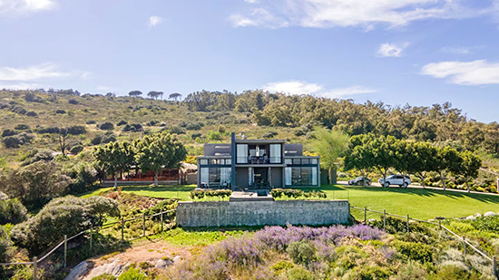 Já na África do Sul, uma wine estate em Stellenbosch alia o rigor da viticultura à arquitectura contemporânea. O casarão, de linhas horizontais e amplas superfícies de vidro, domina 106 hectares de vinhas e oliveiras, com vista para a Table Mountain — uma fusão perfeita entre natureza e sofisticação.