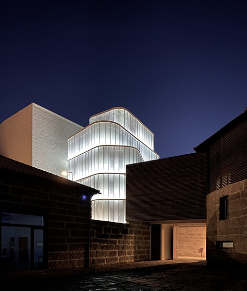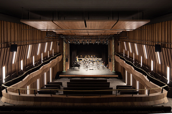 "O auditório autónomo e independente, complementa funcionalmente as valências maiores, escola de música, a escola de artes performativas e a escola de artes visuais, garantindo o funcionamento independente que pode acolher actividades exteriores e diversificadas. O auditório (destinado a dança, música e congressos etc) foi desenhado como sala multifuncional, permitindo a sua reconfiguração e adaptação aos vários eventos propostos."