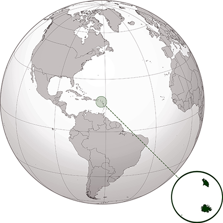 O país Antigua e Barbuda, que é de facto uma monarquia integrada na Commonwealth, é constituída por duas grandes ilhas, Antigua e Barbuda e outras seis ilhotas: Great Bird, Green, Guinea, Long, Maiden e York; além de outras 29 ilhotas desabitadas. Separada por poucas milhas marítimas, o arquipélago faz parte das ilhas de Barlavento das Pequenas Antilhas, na América central e cerca da da linha do Equador.