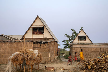 Bangladesh – Khudi Bari, projectado pela Marina Tabassum Arquitetos: casas modulares de bambu e aço para comunidades deslocadas por alterações climáticas.