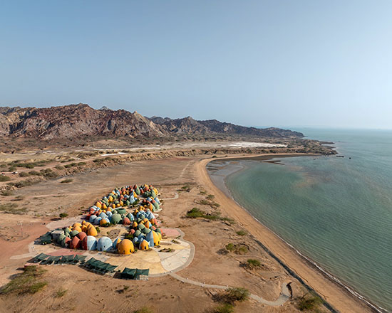 Irão – Complexo Majara, na Ilha de Ormuz, da ZAV Arquitectos: conjunto de cúpulas coloridas que promovem turismo sustentável; e Jahad Metro Plaza, em Teerão, pelo KA Atelier: estação degradada transformada em polo urbano vibrante.