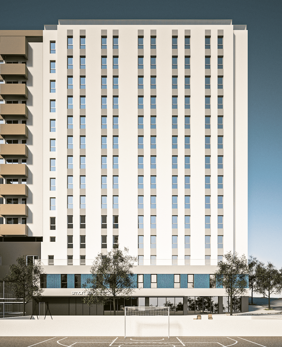 A residência de estudantes Smart Studios na Alta de Lisboa, Lumiar, que resultou num investimento de 10 milhões de euros e disponibilizou 224 quartos totalmente equipados.