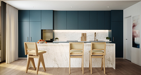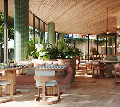 O design de interiores dos apartamentos - que são vendidos totalmente mobilados e decorados – é da responsabilidade da Restoration Hardware Furniture, uma reconhecida empresa norte-americana.