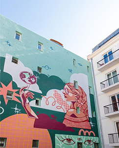 O artista urbano Pedro Peixe assinou o mural presente na enorme parede do pátio do Upon Angels, desenvolvido mal arrancou o processo de reabilitação, e o qual serviu de inspiração e de ponto de partida para a extensão da paleta de cores, desde o branding, da autoria da Havas, ao design de interiores. O empoderamento da mulher e a figura feminina com o mundo na mão reforçam o conceito do espaço e o “mood” que este local pretende transmitir desde a sua essência.