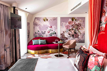 ”Difícil, desafiadora e revigorante, a temática proporcionou-nos um design imaginário, criando formas, imagens e até mesmo sugestões de um olhar para o sexo de uma maneira estética e artística.“, refere Gwenaelle Masse da ARTEO, que criou o design iconográfico que está presente em múltiplos elementos, desde os papéis de parede ao mobiliário, das tapeçarias aos têxteis, como colchas, almofadas e cortinados.