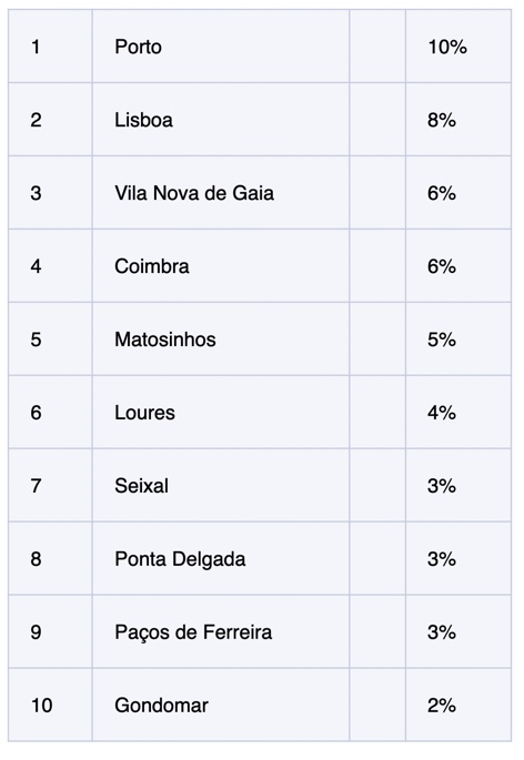 O TOP10 dos concelhos com mais casas vendidas em Portugal é: