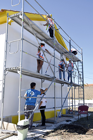 Em cada uma das três casas, participaram permanentemente seis voluntários, apoiados por um técnico de obras, e pelo director e director-adjunto do campo da associação Just a Change, que mobilizou ainda mais um operacional para transporte de materiais e dois para apoio à logística (alojamento, refeições e animação).