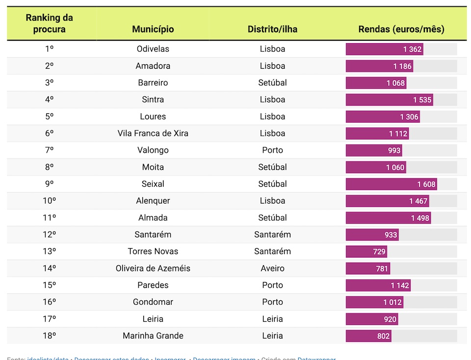 Existem ainda nove municípios com forte procura e rendas abaixo de 1.000 euros/mês