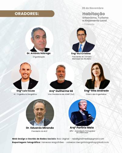 Organizado pelo urbanista António Nóbrega, em parceria com a ASMIP – Associação dos Mediadores do Imobiliário de Portugal (delegação Sul), o encontro reúne especialistas em habitação, engenharia, urbanismo e turismo. Durante o evento será apresentado o livro de António Nóbrega, Os Mecanismos de Controlo Administrativo das Operações Urbanísticas.