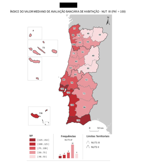 A análise regional mostra que a Grande Lisboa, o Algarve e a Península de Setúbal continuam a liderar os valores de avaliação, situando-se acima da média nacional. Em contraste, regiões do interior, como Terras de Trás-os-Montes e Beiras e Serra da Estrela, apresentam níveis significativamente inferiores.