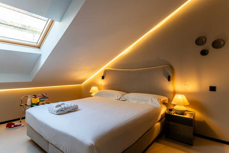 Desde o primeiro momento, os hóspedes são recebidos pelo nome e envolvidos por um serviço personalizado. Num cenário onde Lisboa tem assistido à proliferação de novos projectos hoteleiros, o Casa Teva distingue-se pela sua abordagem diferenciadora. A decoração, assinada pelo Bacana Studio, alia o clássico ao contemporâneo, misturando materiais nobres, texturas envolventes e uma paleta cromática serena para criar um ambiente de sofisticação discreta. O design não é apenas estético – é funcional, pensado para que cada espaço seja um convite ao relaxamento e bem-estar.