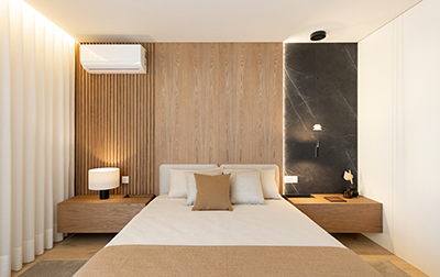 As coberturas abobadadas, além de conferirem uma identidade arquitetónica marcante, possibilitam a criação de terraços panorâmicos que abrem generosamente a vista sobre a praia e o mar.