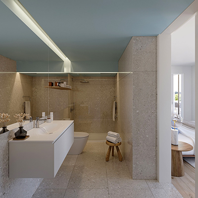 As zonas comuns foram pensadas para promover bem-estar e qualidade de vida. Entre os destaques estão o lobby central com design contemporâneo, um jardim privativo no piso zero, estacionamento para bicicletas eléctricas e até uma sala de meditação.