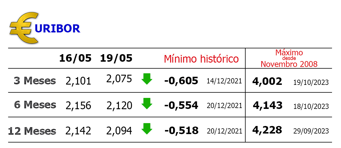 Também a Euribor a três meses, que está abaixo de 2,5% desde 14 de Março passado, recuou hoje, para 2,075%, menos 0,026 pontos e um novo mínimo desde 19 de Dezembro de 2022.