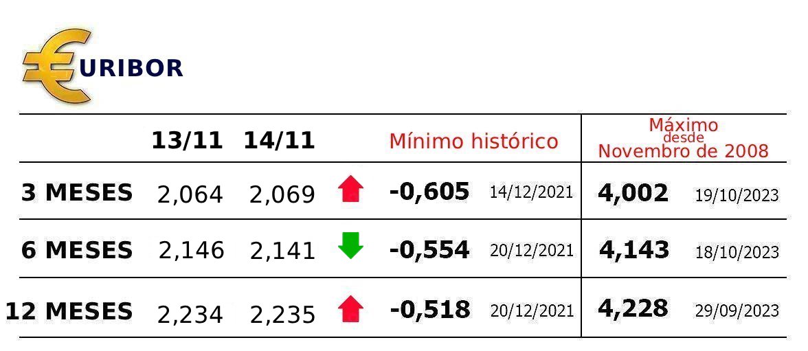 No prazo de 12 meses, a taxa Euribor avançou, ao ser fixada em 2,235%, mais 0,001 pontos do que na sessão anterior.